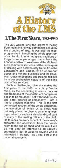 A History of the LMS The First Years, 1923-1930. This book has been written by O S Nock and was published by Studio Editions.