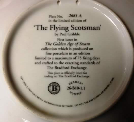 The Flying Scotsman. Limited edition Ceraminc Plate by Paul Gribble Bradex 26-B10-1.1
