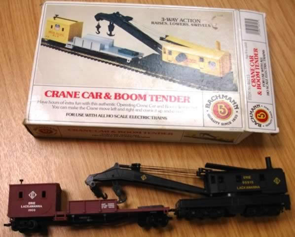 Bachmann: HO Scale: Crane Car & Boom Tender. This Crane Car & Boom Tender set will give detail to any layout.