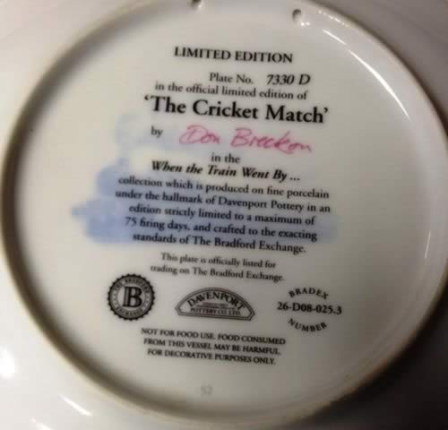 The Cricket Match. Limited edition Ceraminc Plate by Don Breckon Bradex 26-D08-025.3.