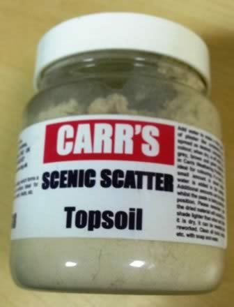 Carr's: Scenic Scatter - Plastic Jar of Secenic Topsoil.  This will add authenticity to your layout.