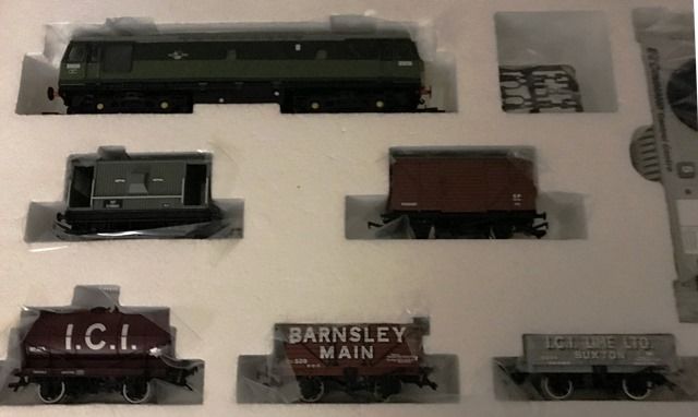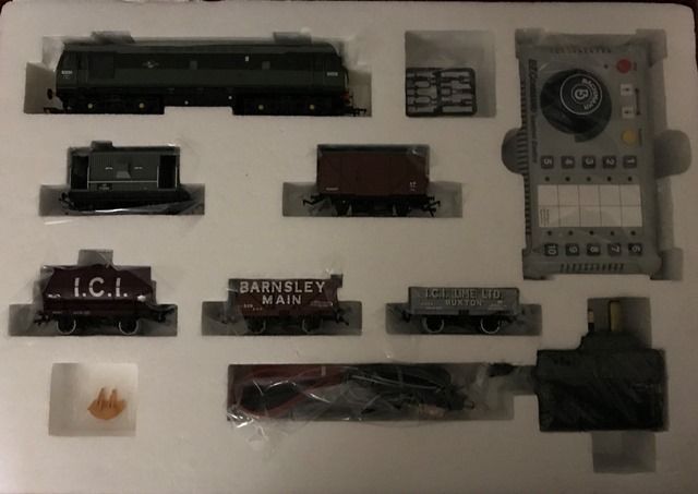 This train set comprises of an oval of track with siding, which can be extended and is fully compatable with all other leading makes of UK track; 'E-Z Command' Digital Controller and AC Mains wall transformer; Class 25 Diesel locomotive and 5 wagons.