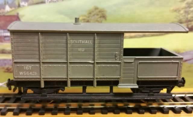 Hornby: Dublo OO Gauge: GWR Goods Brake Van 'Southall RU'. This wagon is Grey.