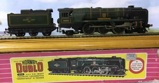 Hornby: Dublo OO Gauge: Green West Country 'Barnstaple' Running Number: '34005', 4-6-2.