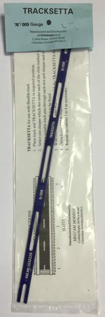 The Tracksetta system allows for simple track laying when using flexible rail. Simply insert the metal Tracksetta gauge in between the rails and the line will automatically form to the correct radius. Now tack through the sleepers with track pins to secure the track in place, and slide the template along the line. Each radius follows prototypical design.