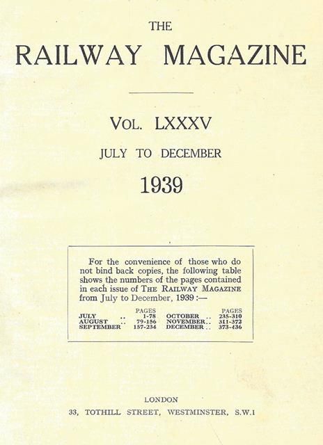The Railway Magazine: Volume 85 (LXXXV) - July To December 1939.